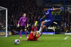 Un gest pentru care ar fi putut fi eliminat: Costa (dreapta), surprins cu câteva momente înainte de a-l călca pe Martin Skrtel pe gleznă (Foto: AFP)
