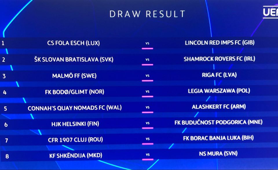 Posibilii adversari pentru CFR Cluj: HJK Helsinki (Finlanda), Connah’s Quay Nomads (Ţara Galilor), Mura (Slovenia), Borac Banja Luka (Bosnia).