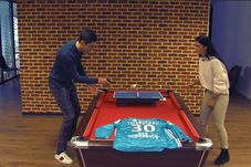 „Lăsăm mereu femeile să câștige, nu?”, a spus Ciprian Tătărușanu, după ce a fost învins cu 5-3 de adversara sa. Tricoul va ajunge la un fan OL.