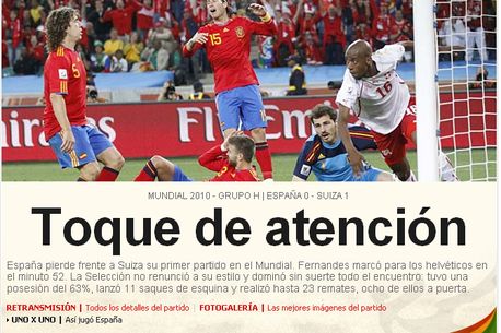 Spania a debutat cu stângul la turneul final din Africa de Sud.