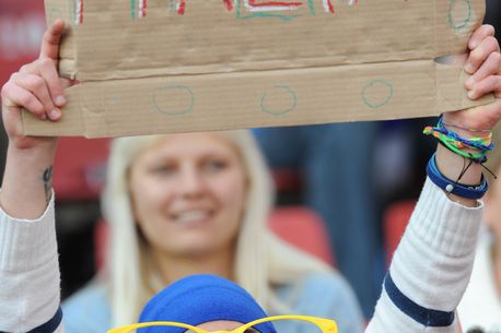 al lor acum patru ani, și îl trimite pe gazon. Stadionul erupe.