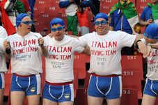 echipa Italiei cu tot lotul lărgit cu ochii închiși. Un fundaș și