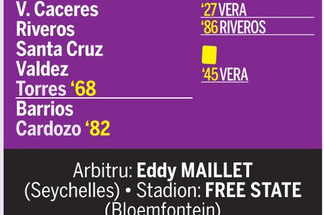 ieri la Bloemfontein. Vera (min. 27) și Riveros (min. 86) au fost