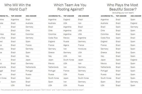 Firma de statistică YouGuv a făcut un sondaj printre cetățenii țărilor participante, cărora le-a adresa următoarele întrebări: „Cine va câștiga Cupa Mondială?”, „Pe cine nu susțineți la Campionatul Mondial?” și „Ce echipă joacă cel mai frumos fotbal?” (foto jos).