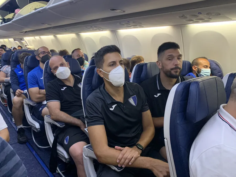 Jucătorii și staff-ul lui Escaldes în avionul către Cluj