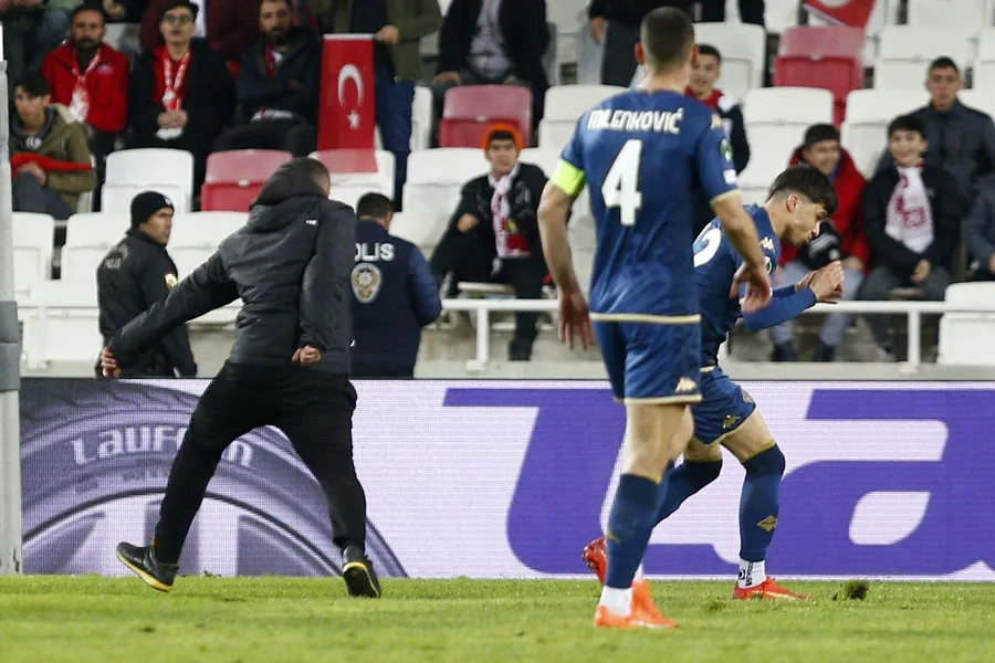 Fanul respectiv a intrat în sprint pe terenul de pe Arena Yeni 4 Eylul Stadyumu din Sivas și înainte de a putea fi oprit de forțele de ordine a reușit să îi aplice o corecție fizică mijlocașului italian, care abia ce fusese introdus pe teren în minutul 83 în locul lui Giacomo Bonaventura.
