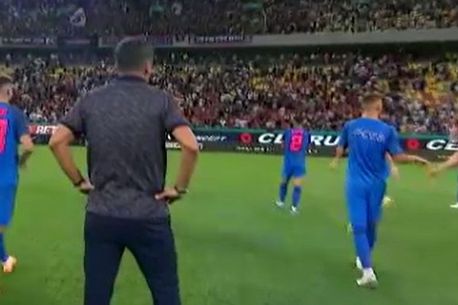 Nicolae Dică, antrenorul lui FCSB, a fost vizibil dezamăgit după înfrângerea cu Viking, din Conference League, însă gestul pe care l-a făcut după meci nu s-a văzut la televizor.