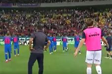Apoi, jucătorii au mers să aplaude galeria, iar Nicolae Dică a fost surprins de către camerele de filmat privind momentul mai retras și, la un moment dat, chiar a pus capul în pământ.