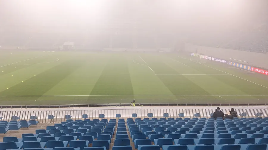 Din cauza faptului că este o ceață foarte densă, tabela de marcaj abia se vede.