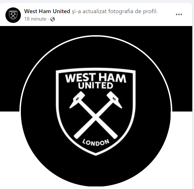West Ham a renunțat la imaginile care au făcut-o consacrată și a urcat pe rețelele de socializare o fotografie neagră, pentru a arăta respectul pentru regina Elisabeta a II-a. Mai mult, sigla clubului din Londra de pe Facebook a fost și ea schimbată în alb și negru.
