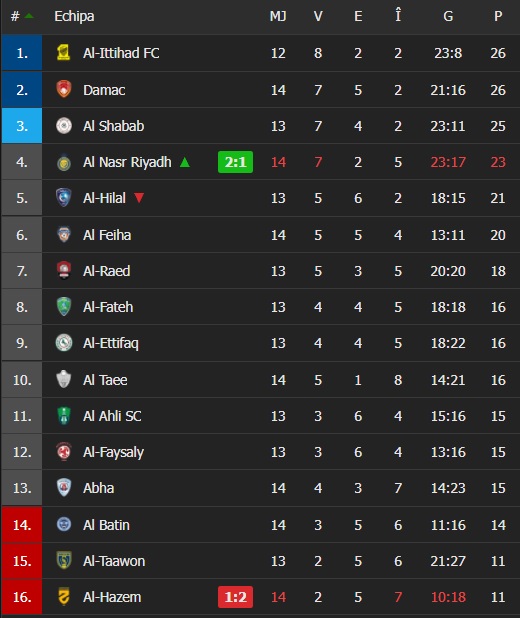 Al Hazem, echipa antrenată de Costel Gâlcă, a pierdut duminică, scor 1-2 (0-1), cu Al Nassr într-un meci contând pentru etapa 12 din campionatul Arabiei Saudite.