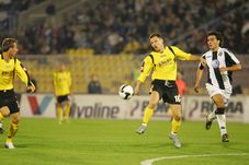 Bucur se zbate, dar nu e tocmai ziua lui norocoasă, ratează câteva ocazii, dar meciul se termină cu victoria și calificare Partizanului.