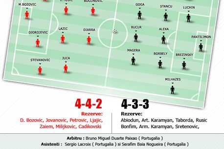 Min. 24 Stevanovic încasează primul cartonaș galben al partidei, după un fault dur asupra lui Goga