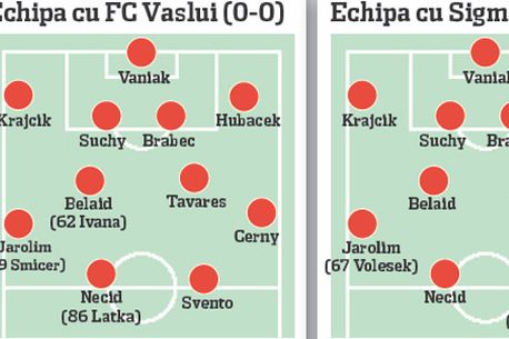 Noutatea este titularizarea tânărului italian Gianluca Litteri, 20 de ani, venit sub formă de împrumut de la Inter, care a marcat primul său gol în Cehia și s-a înțeles bine cu Necid.