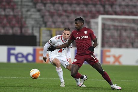 Mario Junior Rondon Fernandez si Georgi Yomov in meciul de fotbal dintre CFR Cluj si TSKA Sofia din cadrul grupei A a Ligii Europa, disputat fara spectatori pe stadionul Dr. Constantin Radulescu din Cluj-Napoca, joi 3 decembrie 2020. © FOTO:Flaviu Buboi / Sport Pictures