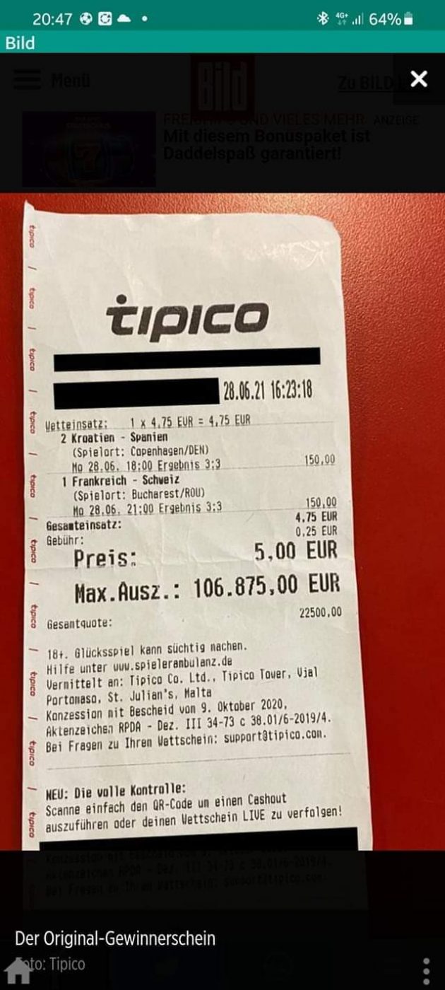Bild a publicat biletul fabulos care a conținut doar două evenimente, fiecare cu o cotă imensă și, evident, puțin probabilă: 150.