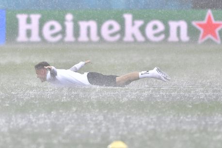 I-am primit deja pe austrieci cu o ploaie torențială ieri, care a inundat terenul de pe National Arena și l-a făcut impracticabil.
