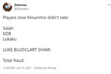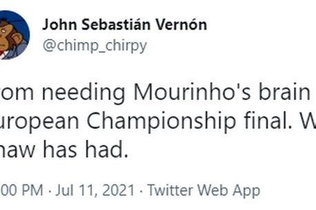 Fanii englezi nu l-au uitat pe „The Special One” pentru modul în care s-a comportat cu fundașul stânga al echipei naționale a Angliei și l-au luat peste picior. „Mourinho după ce a văzut golul Angliei de mai devereme”, a fost unul dintre mesaje, iar alături a fost adăugată următoarea fotografie: