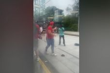În imaginile devenite virale pe Internet se vede cum mai mulți bărbați s-au luat la bătaie chiar pe peronul unei gări.