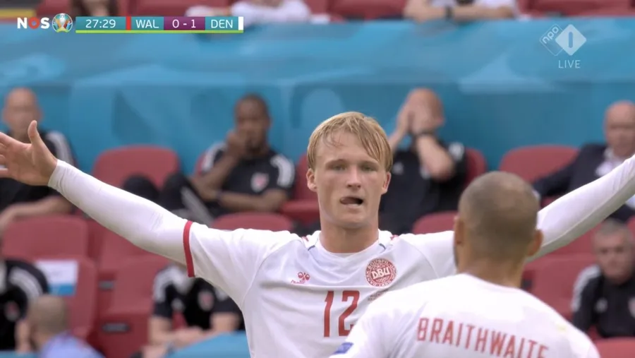 Min. 90+6: GOOOOL DANEMARCA! Braithwaite înscrie cu ajutorul VAR.