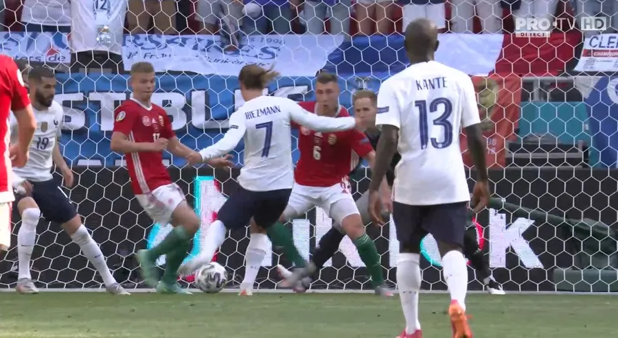 Min. 66: GOOOL FRANȚA! Mbappe pătrunde în careu pe partea dreaptă și centrează în careu pentru Griezmann, care reia din fața careului de 6 metri după o deviere a apărării maghiare ș trimite direct în poarta Ungariei!