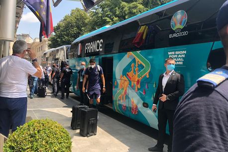 Delegația condusă de Didier Deschamps a aterizat pe aeroportul din Băneasa la ora 12.45, ora României, iar vedetele din lotul echipei naționale a Franței au fost așteptate de două autocare pentru a-i duce la hotelul unde vor sta până după partida cu Elveția.