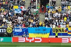 La începutul partidei, a putut fi văzut un steag în culorile Ucrainei, pe care era scris mesajul „Give us elections back” („Dați-ne alegerile înapoi!”). UEFA nu tolerează amestecul politicului în sport, motiv pentru care respectivul steag a dispărut la pauză.