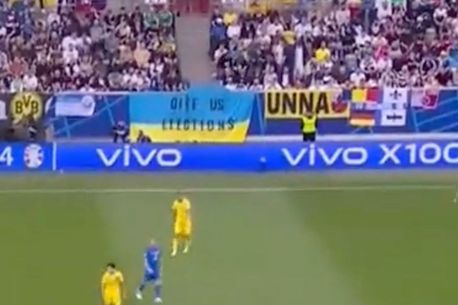 Ucraina a întâlnit Slovacia în etapa a doua din Grupa E de la EURO 2024, iar suporterii au afișat un banner, mesajul fiind surprins pe toată durata primei reprize.