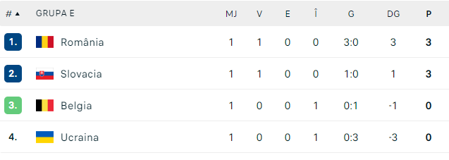 România a reușit o victorie cu fast împotriva naționalei Ucrainei, 3-0, iar surprizele zilei nu s-au oprit. Belgia, cea mai bine cotată echipă din Grupa E a Campionatului European din Germania, a cedat împotriva Slovaciei, 0-1. Deși Lukaku a reușit să marcheze de două ori, ambele reușite ale starului belgian au fost anulate.
