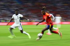 Flaboaiantul Nico Williams a fost protagonistul unei porniri rapide, din unghi, într-o situație de unu la unu cu stoperul englez John Stones. Cea mai mare ocazie pentru Spania în primele 45 de minute. A avansat iute, păstrând diagonala în direcție, cu câteva „biciclete” în aer, etalând simbolic atributele diferențiatoare ale ibericilor: calitate individuală ofensivă, viteză, creativitate.