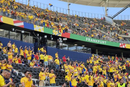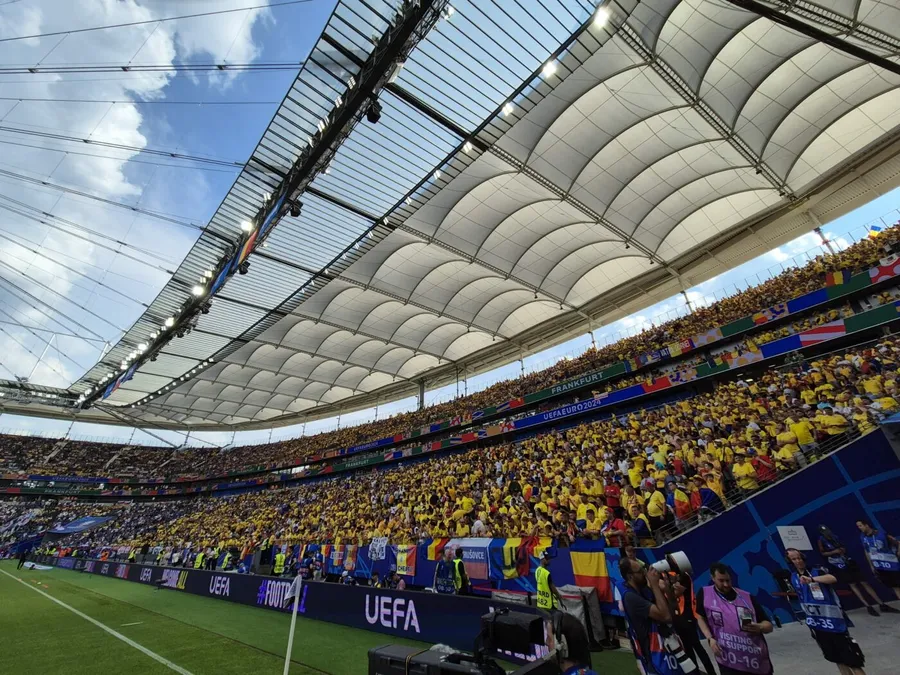 Stadionul din Frankfurt este un vulcan din care țâșnește fierbinte, ca o lavă, un strigăt de luptă: Româniaaa, Româniaaa!
