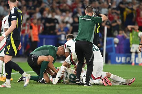 Naționala Ungariei a fost aproape de o tragedie la meciul cu Scoția de la EURO, după ce Varga a căzut inconștient pe gazon, după ce a fost lovit de portarul advers.