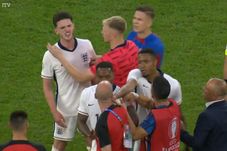 Francesco Calzona a mers la arbitri pentru a le reproșa faptul că nu au sancționat mai eficient tragerile repetate de timp ale englezilor din finalul partidei. Însă, tehnicianul nu și-a putut spune oful din cauza lui Declan Rice. Astfel, cei doi au ajuns să intre într-un conflict direct, care a fost la un pas să degenereze într-o bătaie.