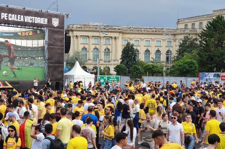 Pentru a avea parte de o atmosferă mai dinamică în comparație cu cea din fața televizorului, fanii naționalei noastre au decis să vadă meciul în oraș și au umplut Fan Zone-ul de la Ateneu.