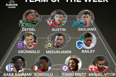 Cum arată echipa ideală: Steele (Panathinaikos) – Baba Rahman (Schalke), Kongolo (Feyenoord), Tiago Pinto (Osmanlispor), Miguel Vitor (Hapoel Be’er Sheva) – Grunwald (Austra Viena), Medunjanin (Maccabi Tel Aviv), Bailey (Genk) – Defrel (Sassuolo), Austin (Southampton), Giuliano (Zenit)