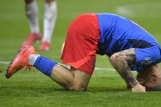 Accidentat, atacantul titular al roș-albaștrilor nu a venit la stadion, cel mai probabil, sfătuit de medici, și a preferat să urmărească la televizor succesul istoric al colegilor săi în Europa League.