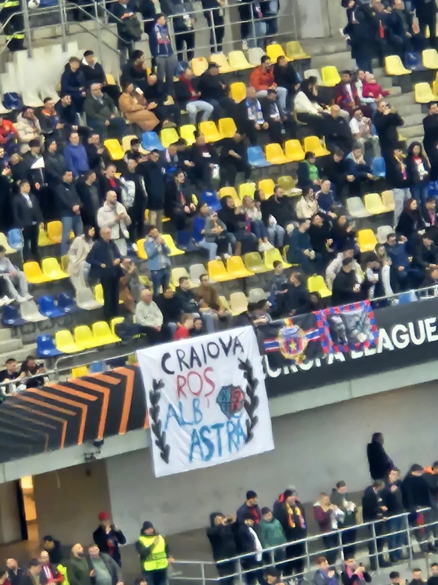 Roș-albaștrii au fost încurajați și de mulți olteni, iar un steag a atras atenția chiar în debutul partidei, mesajul fiind „Craiova roș-albastră”.