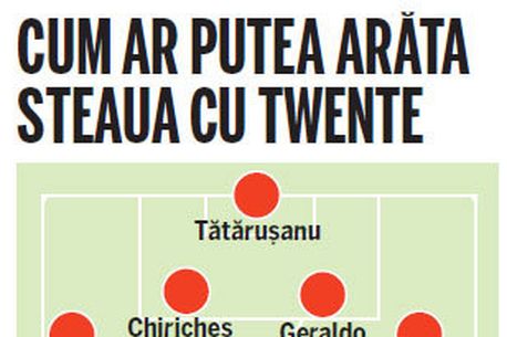 În ultima partidă pe care Twente a câștigat-o în Eredivisie, 4-1 cu FC Groningen, Steve McClaren a folosit aproape pe durata întregii partide o linie de fund formată din jucători înalți și puternici. În aceste condiții, Narcis Răducan și Edi Iordănescu au ajuns la concluzia că cea mai bună metodă de a sparge un astfel de baraj este ca Steaua să folosească un prim vârf de aceeași statură, dublat de unul care poate profita de viteză și tehnicitate. Astfel, pentru că Machado nu are drept de joc în Europa League, Nikolic este fotbalistul pe care Ilie Stan se va baza în duelurile cu Douglas sau Cornelisse.