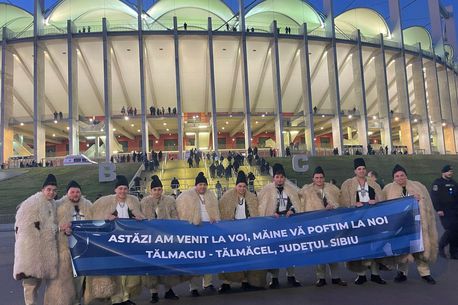Meciul FCSB – Lyon, din optimile de finală a Europa League, încheiat cu scorul 1-3, a atras o multitudine de suporteri din țară, iar un grup de 12 bărbați din Mărginimea Sibiului a fost „pata de culoare” din tribunele Arenei Naționale.