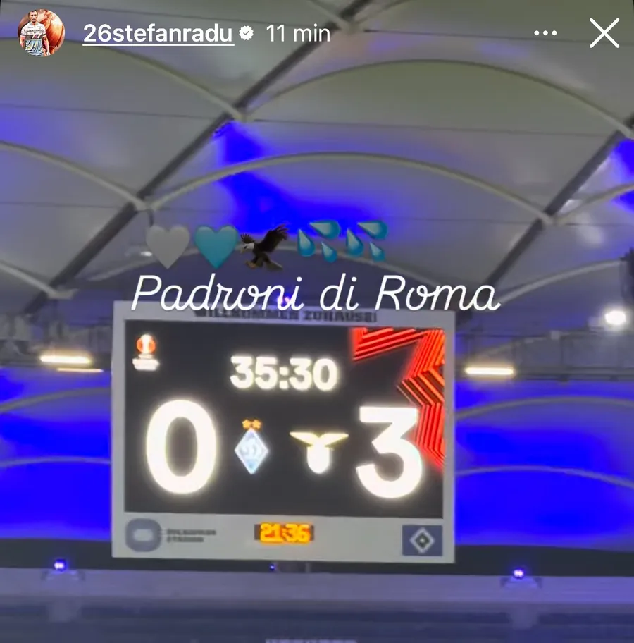 Trăiesc niște experiențe minunate. Să merg la meciurile din deplasare din postura de fan este unul dintre cele mai bune lucruri care mi s-au întâmplat în ultimii ani. E impresionant! Sunt mereu prezent pe Olimpico, dar și în deplasare. Nu m-am născut fan Lazio, dar am devenit unul. Ce vreau să le transmit suporterilor? Îi salut, îi îmbrățișez pe toți și sper să-i văd pe stadion susținându-i pe băieți, atât la meciurile de acasă, cât și la cele din deplasare. Forța Lazio pentru totdeauna”, a declarat Ștefan Radu, potrivit RadioLaziale.