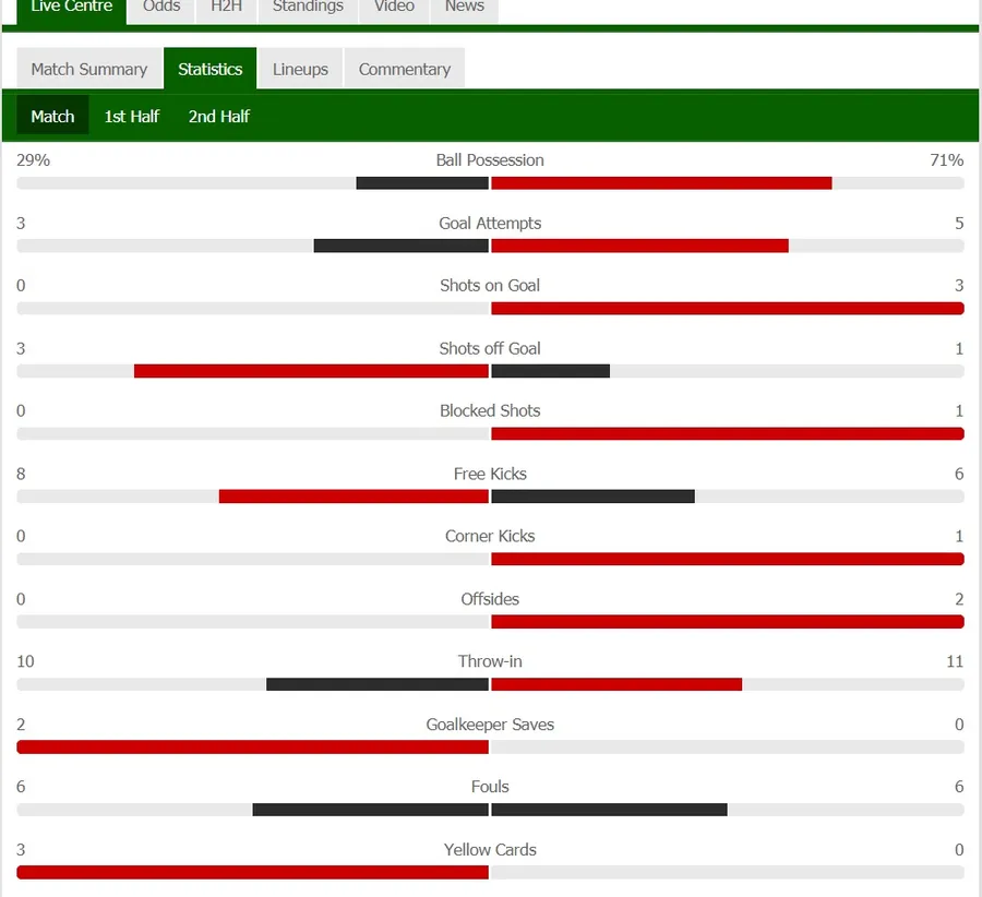 Cu toate acestea, Roma a condus la pauză cu 2-0, la capitolul șuturi pe spațiul porții.
