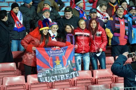 La meciul cu FC Copenhaga, românii au încercat să fie într-un număr cât mai mare. Totuși, nu s-au dat toate cele 1000 de bilete puse la dispoziția clubului Steaua. Doar aproximativ 200 de persoane au cumpărat tichete, fie din România, fie de la hotelul Stelei, cu 25 de euro. În plus, alți 300 de români care lucrează în oraș sau în împrejurimi și-au procurat individual bilete de pe internet și au stat împrăștiați prin tribune. Vocile celor 500 de români s-au auzit constant pentru că nici danezii nu s-au înghesuit la acest joc, stadionul fiind ocupat pe jumătate.