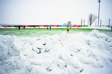 Pe un frig necruțător, reporterii ProSport și-a luat ieri inima în dinți și au vizitat terenurile de antrenament ale roș-albaștrilor de la bazele de pregătire ale FRF-ului. Concluzia? Temerile steliștilor sunt întemeiate. Înainte să ajungem la Buftea, am fost opriți de niște localnici chiar pe câmpul unde este situată baza forului lui Mircea Sandu. „Aveți lopată în mașină? Treaba voastră! Vedeți să nu rămâneți pe aici împotmoliți. Nu o să deosebiți drumul de câmp, deoarece totul e acoperit în alb și zăpada e foarte mare. Mai devreme la 100 de metri de aici a rămas înzăpezit un autocar”, ne-au avertizat aceștia. După ce am ajuns în cele din urmă la destinație, am avut surpriza să vedem pe un teren sintetic 22 de fotbaliști. Jucătorii formațiilor Chindia Târgoviște și Conpet Ploiești, care cu greu puteau să se țină pe picioare, mimau pe un gazon artificial înghețat o partidă de fotbal. Alături, pe terenul central de antrenament zăpada nici măcar nu era îndepărtată.