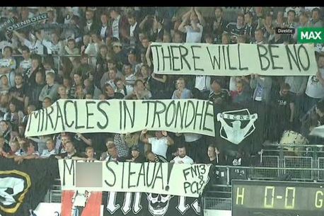 „Nu vor fi miracole în Trondheim! M*** Steaua!„, a fost mesajul afișat de fanii lui Rosenborg înainte de primul fluier al arbitrului, bannerul fiind semnat „FN13” și „PCH” (Peluza Cătălin Hâldan).
