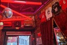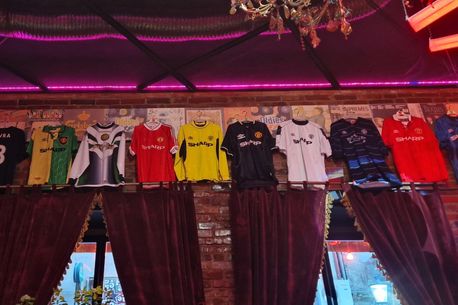 Tricourile lui David Beckham, Cristiano Ronaldo, Edwin van der Sar, Patrice Evra, „Chicharito” Hernandez, Wayne Rooney, Ole Gunnar Solskjaer şi alte legende ale lui Man United tronează pe pereţii locaţiei din centrul Capitalei, care are un aer de pub din Manchester. Cei care nu au bilete la meci şi-au rezervat deja locurile pentru a urmări partida chiar din respectiva locaţie, unde vor putea savura şi băuturile preferate şi vor cânta celebrele imnuri ale trupei de pe Old Trafford, de 3 ori câştigătoare a Champions League. Precedenta vizită a lui Man United în România a fost în 2004, pentru un duel cu Dinamo, în preliminariile Champions League.