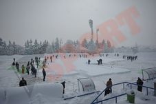 Cum stratul de zăpadă este foarte gros, iar timpul pentru deszăpezire este scurt, mai mulți fani ai roș-albaștrilor s-au oferit să ajute la degajarea omătului de pe teren.