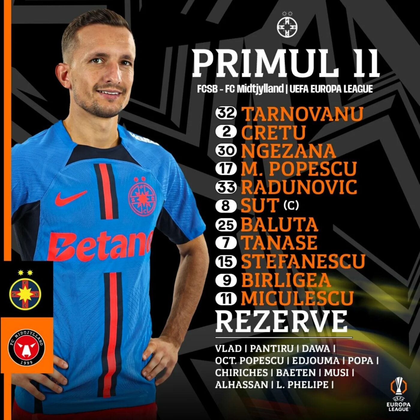 Gigi Becali a anunțat echipa cu câteva zile înaintea duelului cu campioana Danemarcei. Totuși, Thomas Thhomasberg nu a vrut să fie luat prin surprindere de români, crezând că poate asta e doar o tactică de a induce adversarii în eroare și de fapt FCSB să înceapă cu o altă formulă de start. Și totuși, finanțatorul roș-albaștrilor nu a mințit cum se aștepta tehnicianul danezilor.