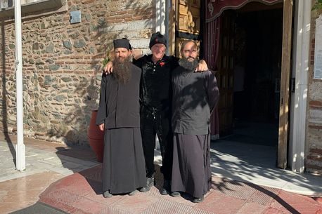 Jurnaliștii din Grecia au văzut imaginile cu Gigi Becali, sosit la Salonic alături de trei călugări, și l-au numit într-un singur cuvânt pe patronul FCSB.