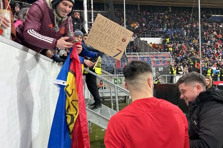 În afara fanilor veniți din București sau din țară, FCSB a fost susținută de multi români stabiliți de ani buni în diaspora. La peluză a apărut un banner emoționant, scris în culorile clubului: „Mi-e dor de Steaua”. În rândurile de jos, zeci de steaguri tricolore, unele puse invers, pe principiul „rosu-galben-albastru”, și multe cartoane desenate de copii, care îi implorau pe favoriți să le dea tricourile.