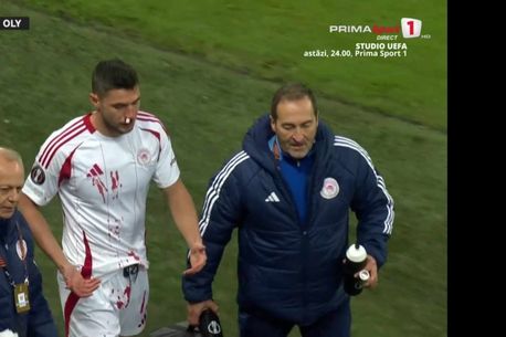 Olympiacos are parte de o pierdere importantă, după ce fotbalistul ucrainean Roman Yaremchuk a părăsit terenul plin de sânge, după ce a fost accidentat la finalul unui duel cu Mihai Popescu. Cei doi jucători s-au împăcat la marginea terenului, însă atacantul central intrat pe teren în minutul 77 a părăsit suprafața de joc după numai opt minute.